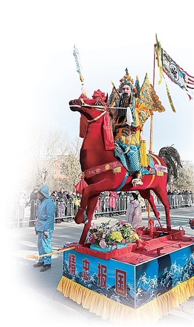 宁夏固原“隆德高台马社火”在街头巡游,威风凛凛。张国勤摄