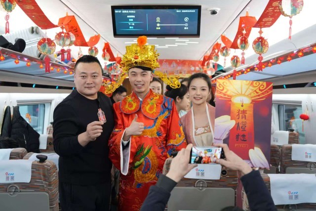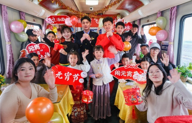 3月2日,元宵佳节来临之际,在天津站开往广州白云站的T253次列车上,国铁北京局天津客运段开展的“喜乐闹元宵 飞驰向美好”活动温情启幕,为乘客打造沉浸式节日民俗体验。
