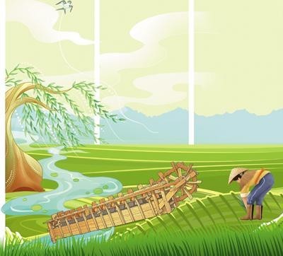 在龙骨水车出现之前,古人用什么工具灌溉农田?商周时期,人们使用桔槔汲水,俗称“吊杆”。它在竖立的架子上加一根细长的杆,中间是支点,一端悬挂重物,另一端悬挂水桶,利用杠杆原理取水。到了春秋战国时期,北方地区出现了辘轳,利用轮轴从井中提水。这些灌溉用具都只能在固定位置间歇式取水,不方便移动,效率有限,扬程也不高。