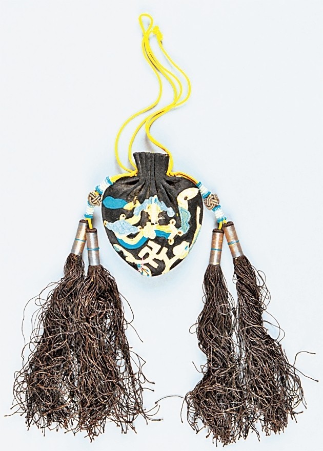 黑色缎钉绫万福如意纹鸡心式荷包 故宫博物院藏 图片由作者提供