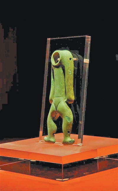 金沙遗址博物馆展陈的铜人形器文物。