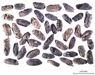 浙江仙居下汤遗址出土的上山文化时期炭化稻米。