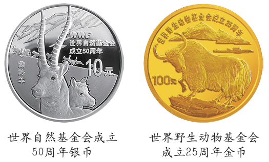 2011年发行的世界自然基金会成立50周年金银币和1986年发行的世界野生动物基金会成立25周年金银币,可谓一脉相承,都对珍稀野生动物的自然生活环境进行了直观的艺术表达,传递了人与自然和谐共生的人文主旨。